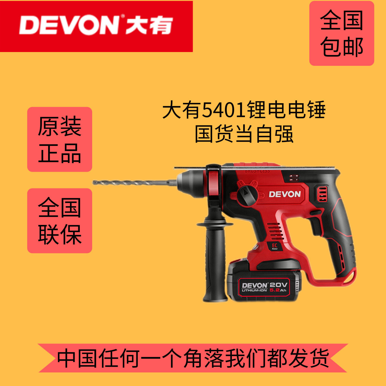 新疆包邮大有5401多功能锂电充电电锤轻型充电式无刷冲击钻工业级热门设计联盟服务商