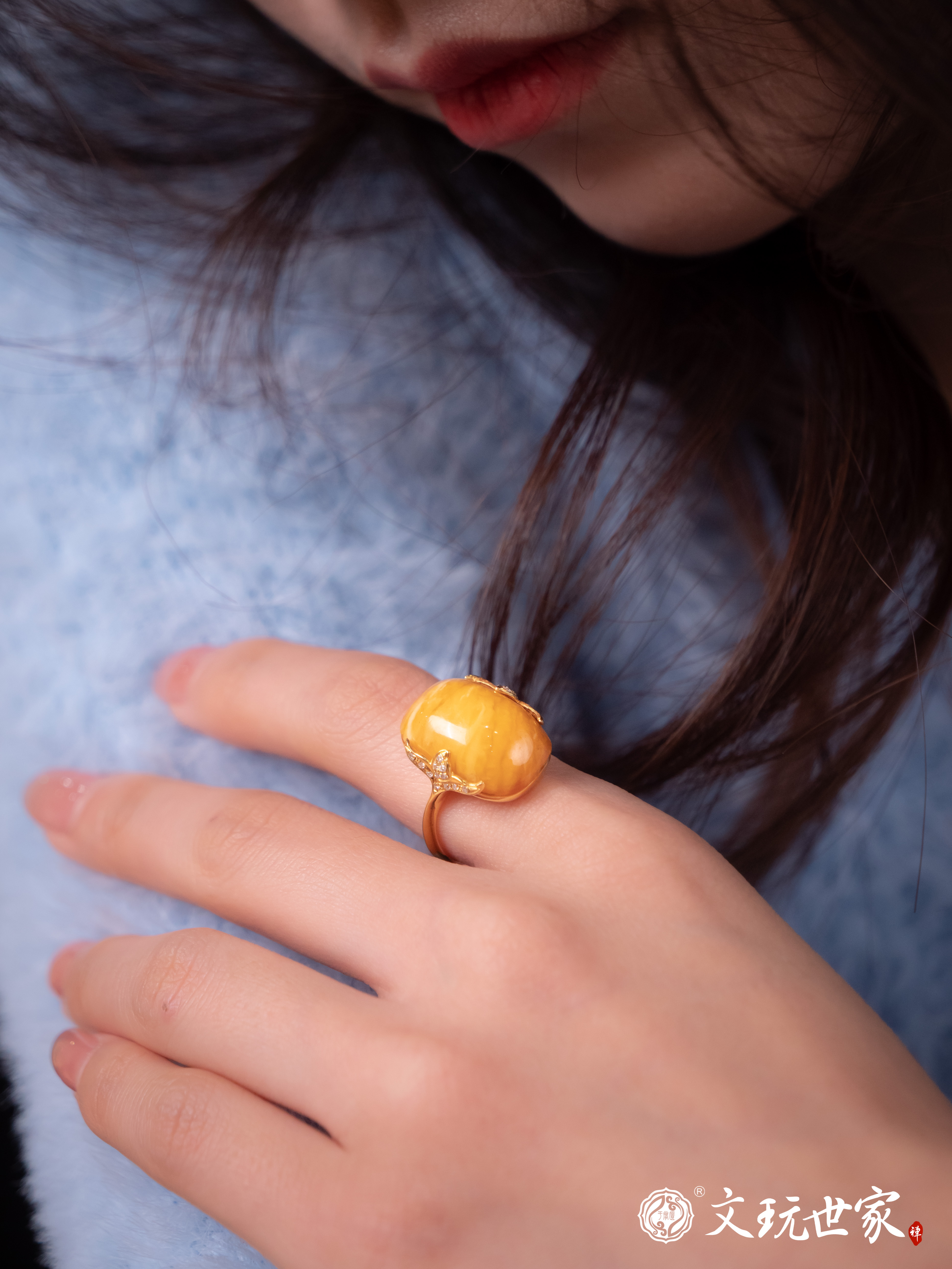 于掌柜 女士天然波兰老蜜蜡伴钻古法金戒托质感好物 复古设计热门设计联盟服务商